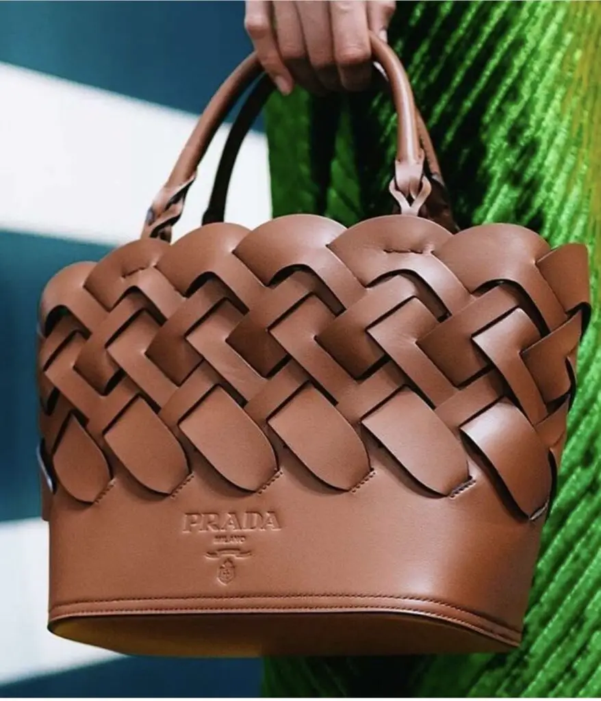 Bucket bag with intrecciato details by Prada - Credits: @pinterest
