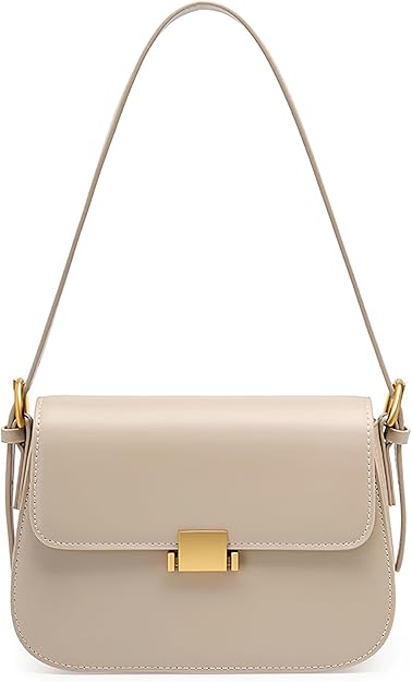 Cremy white shoulder bag crafted from high-quality genuine cowhide leather with gilded hardware. Luxurious, durable and timeless. At 51.99$ on Amazon.