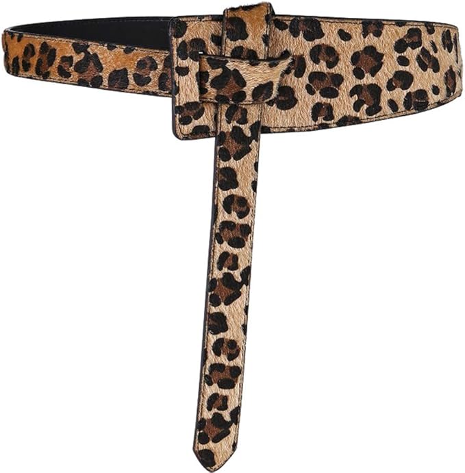 Leopard-printed asymmetrical leather belt. Also availavle in classic, natural hues and cherry red. At 17.99$ on Amazon.