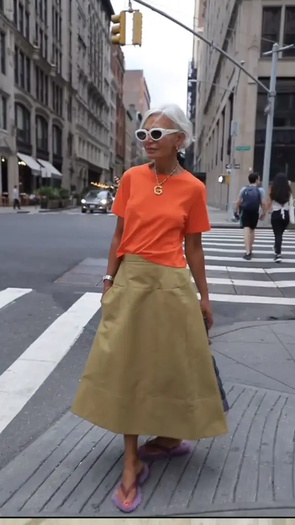 Orange adds warmth and joy — try it in accessories, tees or printed blouses.