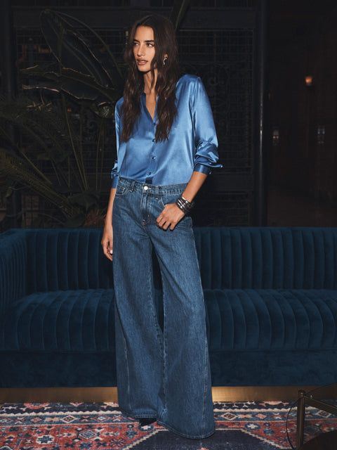 Silk top and wide-leg jeans by l'Agence - Credits: @pinterest