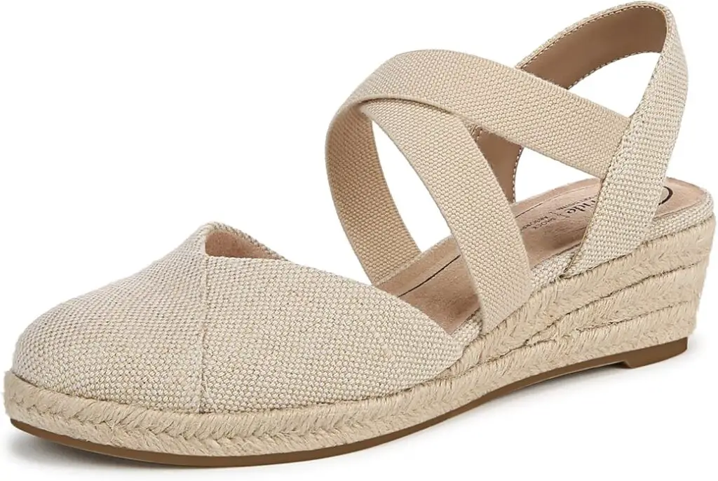 Wedged espadrilles with the perfect heel hight for max comfort. At 49.99$ on Amazon. They come in several colourways.