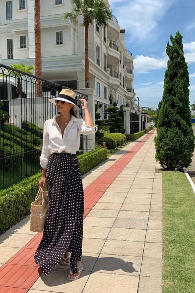 🎭 Mini tip: Keep fabrics breathable — cotton, linen blends, and airy silks let you stay polished without overheating. For a finishing touch, swap heavy jewellery for gold hoops or a single statement necklace.